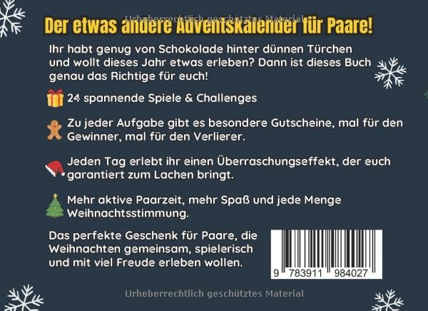 Adventskalender für Paare, Duell-Buch für Paare, lustige Spiele für den Advent, gemeinsame Erlebnisse im Dezember, Gutscheine für Paare Weihnachten