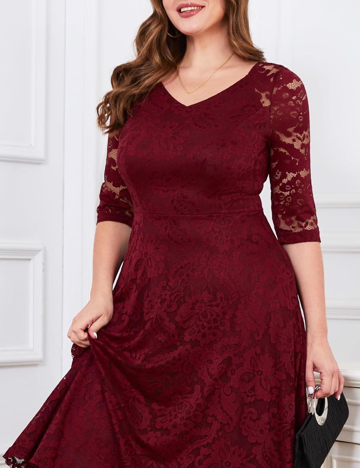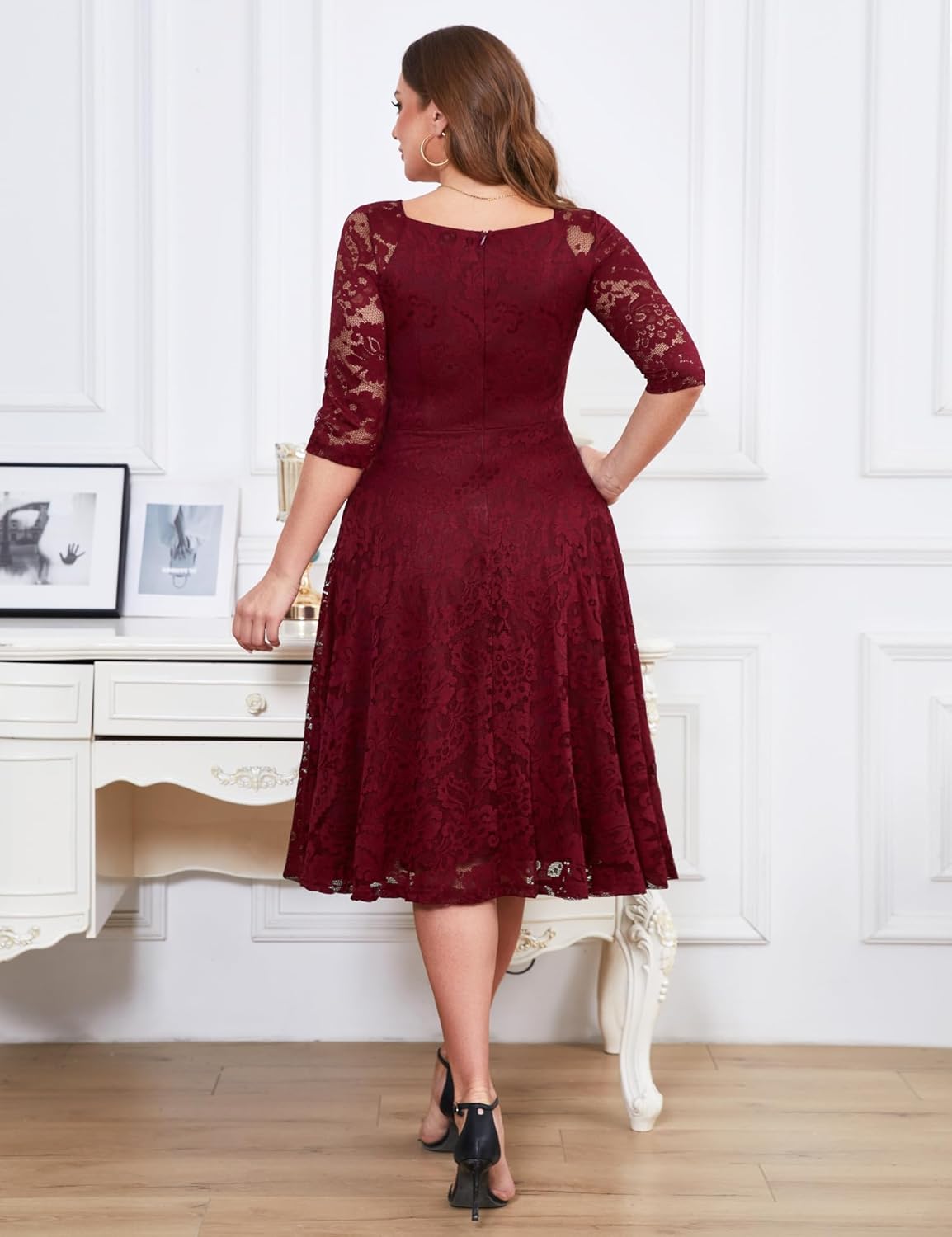 Dieses 3/4-Ärmel Spitzenabendkleid ist die perfekte Wahl für Hochzeiten, Cocktailpartys, festliche Anlässe im Büro oder casual Events. Es kombiniert Eleganz mit einem formellen Stil.