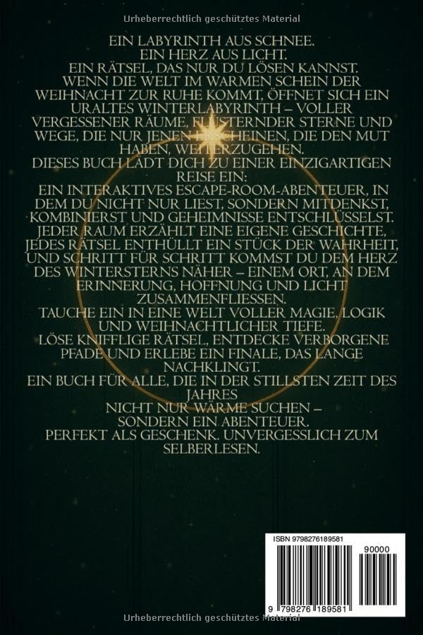 Zusätzlich erwarten dich Lösungen am Ende jedes Kapitels sowie ein Bonuskapitel mit weiteren kniffligen Rätseln für besonders Rätselhungrige. „Escape Room: Gefangen im Weihnachtsrätsel“ ist nicht nur ein unterhaltsames Rätselbuch, sondern ein Erlebnis, das Weihnachten lebendig werden lässt. Bist du bereit, das Herz des Wintersterns zu erwecken? Lass dich von diesem einzigartigen Weihnachtsrätsel verzaubern und entdecke die Magie der festlichen Saison!