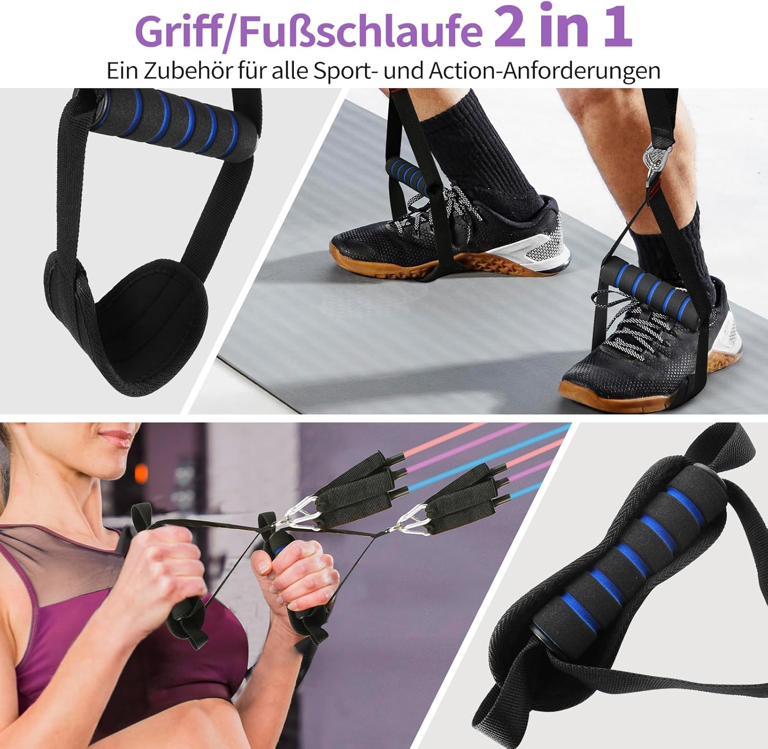 Die robuste Bauweise der Bänder gewährleistet eine lange Lebensdauer, während die rutschfesten Griffe und Knöchelriemen Ihnen maximalen Komfort bieten. Darüber hinaus ermöglicht der Türanker eine Vielzahl von Übungsvariationen für ein effektives Ganzkörpertraining.