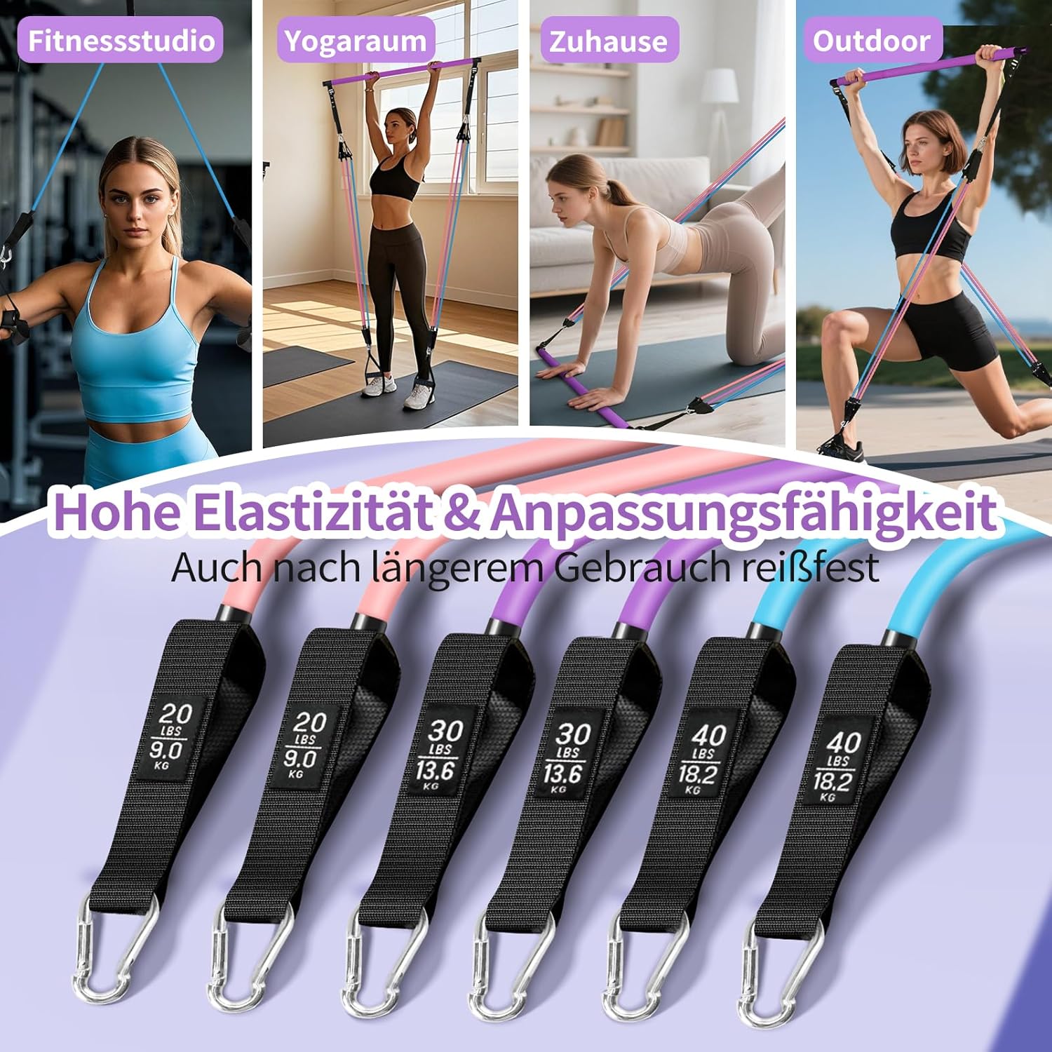 Fokky Fitnessbänder, Widerstandsbänder Set, Pilates und Yoga Bänder, Gymnastikband Türanker, Muskelaufbau Fitnessband