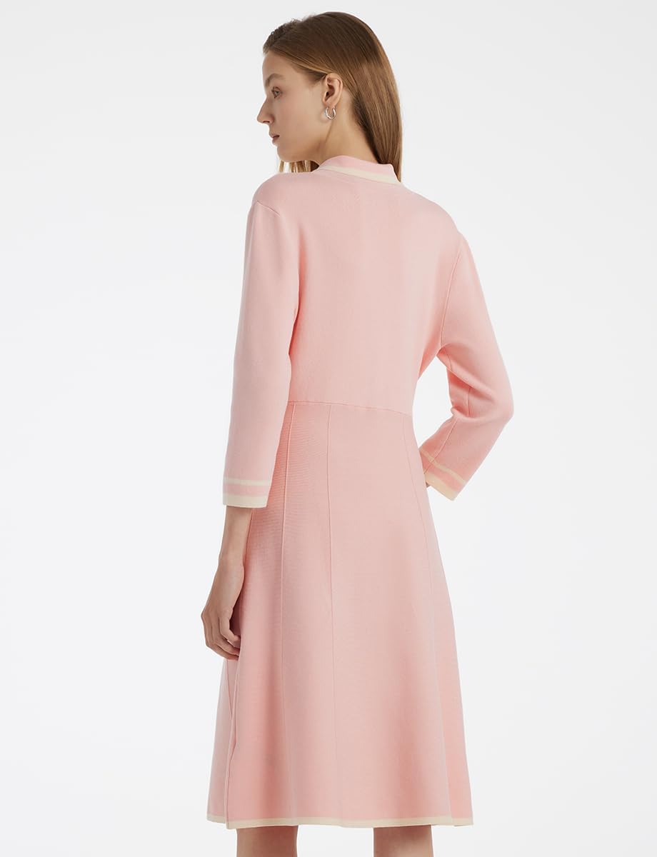 Dieses Damenkleid besteht aus hautfreundlichem und bequemem Stoff. Es ist äußerst dehnbar und passt sich jeder Körperform an. Ideal für Lehrer, im Business, in der Freizeit oder bei der Arbeit. Das langärmelige Mini-Pulloverkleid verfügt über ein Strickknopf-Design, eine Knopfleiste vorne, einen einteiligen Kragen sowie 3/4-Ärmel. Das taillierte, zweireihige Kleid mit weißen Linien sorgt für einen eleganten Look.
