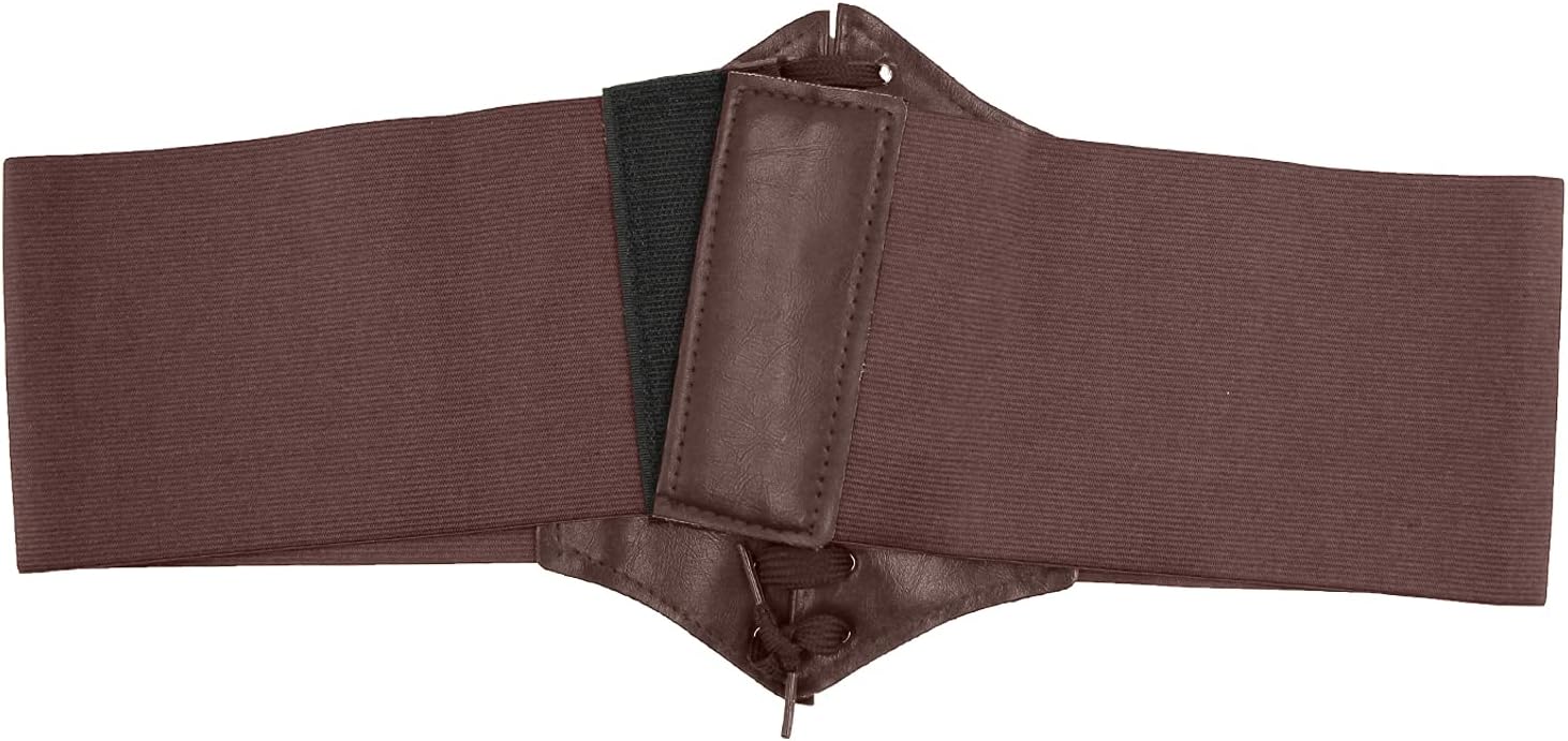 Dieser klassische Vintage-Stil Gürtel verfügt über eine Leder-Schnürung im Waspie-Korsett-Design und besteht aus Polyester und PU-Leder. Die Vorderseite kombiniert hochwertiges Lederimitat mit einer ansprechenden Schnürung, während die Rückseite aus elastischem Gummiband mit zwei Klettverschlüssen gefertigt ist.