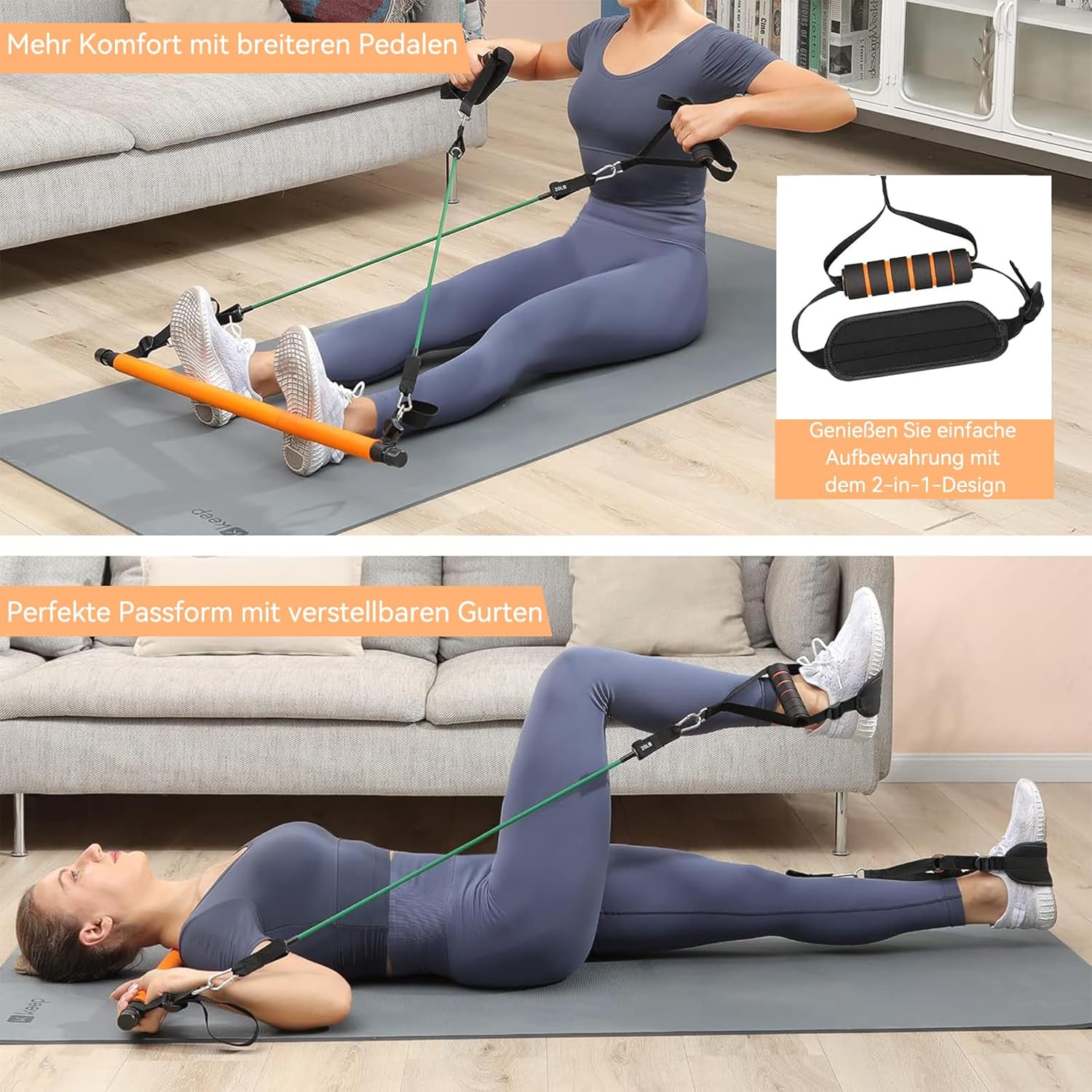 Sind Sie es leid, teure Fitnesskurse zu besuchen? Mit dem Hommie Pilates Bar Set sparen Sie Zeit und Geld. Die beiliegende Anleitung mit illustrierten Trainingsroutinen und Zugang zu Trainingsvideos macht Sie zum eigenen Pilates-Trainer. Erleben Sie, wie einfach es ist, einen gesunden, starken Körper in Ihrem eigenen Zuhause zu formen.