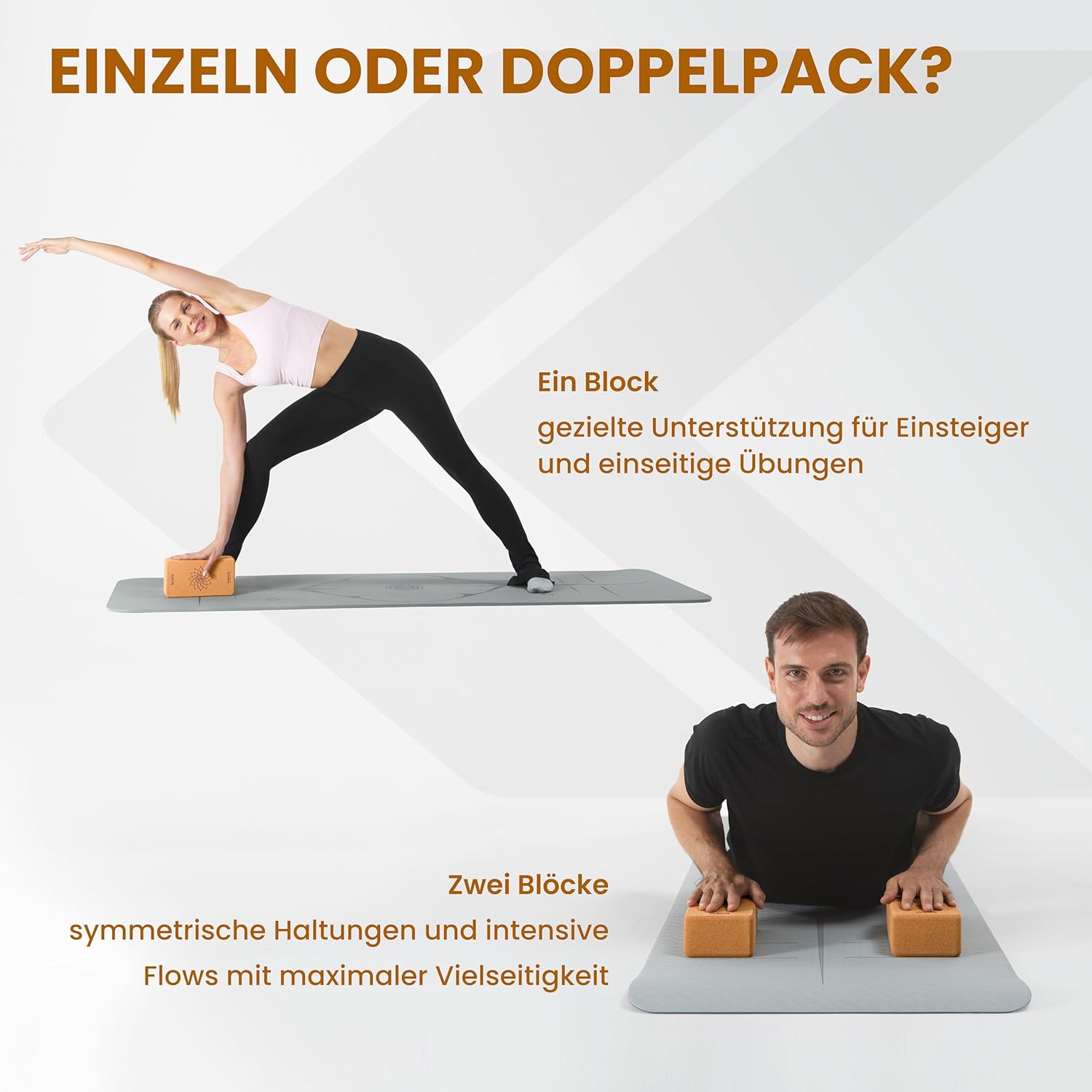 Yogablock Kork, rutschfeste Pilates Blöcke, ergonomische Yogablöcke, nachhaltige Yoga-Ausrüstung, Yoga Zubehör Deutschland
