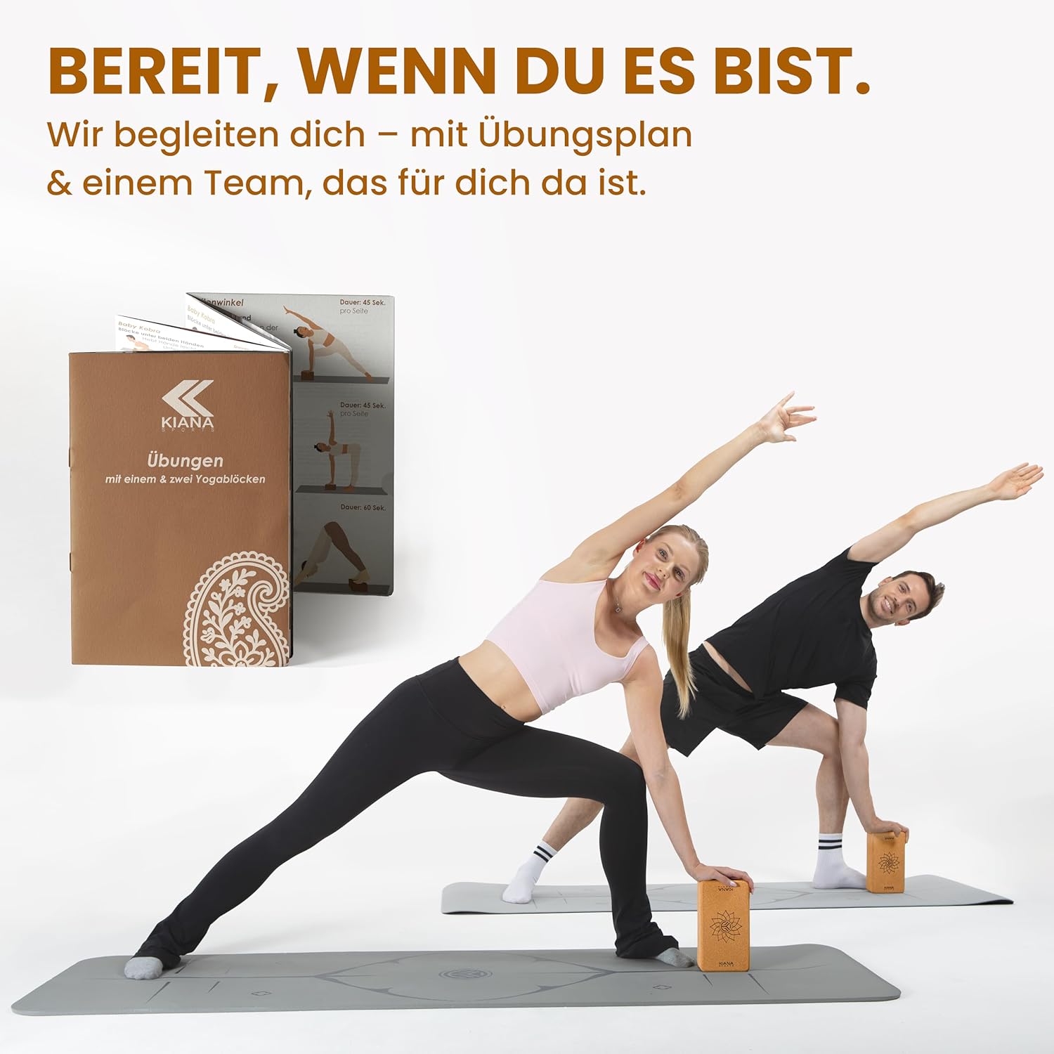 Entdecke die Vorteile der KIANA SPORTS® Yoga Blöcke, die in Deutschland entwickelt wurden und aus hochwertigem Naturkork gefertigt sind. Diese ergonomischen und griffigen Yogablöcke sind die perfekte Unterstützung für alle, die ihre Flexibilität und Balance verbessern möchten. Egal, ob du Anfänger oder erfahrener Yogi bist – unsere Blöcke bieten dir den sicheren Halt, den du benötigst, selbst bei schweißtreibenden Übungen.