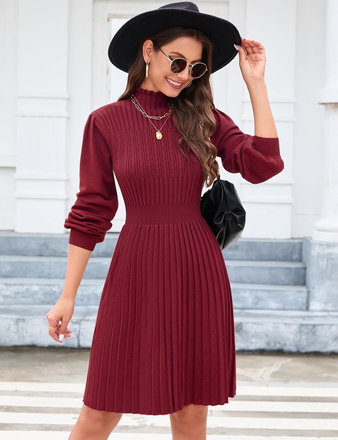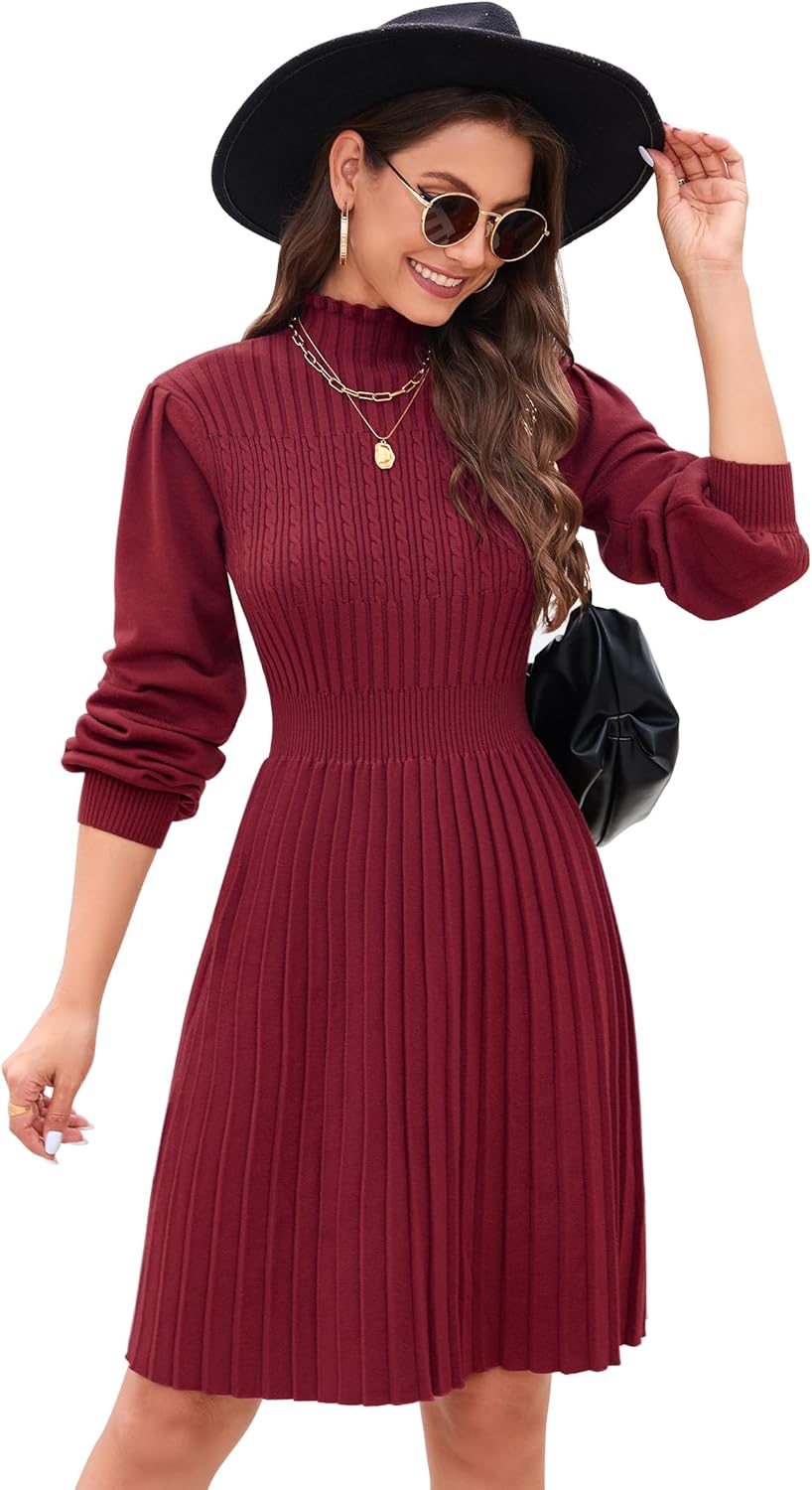 KOJOOIN Strickkleid Damen Elegant Rollkragen Pulloverkleid Langarm Tunika Kleid A Linien Minikleid Rundhals Pullikleid (Verpackung MEHRWEG)