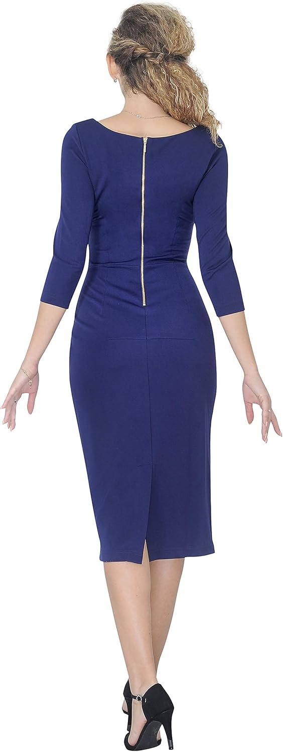 Dieses atemberaubende Midi-Kleid für Damen im Vintage-Stil bringt den zeitlosen Charme klassischer Designs zurück und verleiht Ihrer Arbeits- oder Bürogarderobe einen Hauch von Raffinesse.