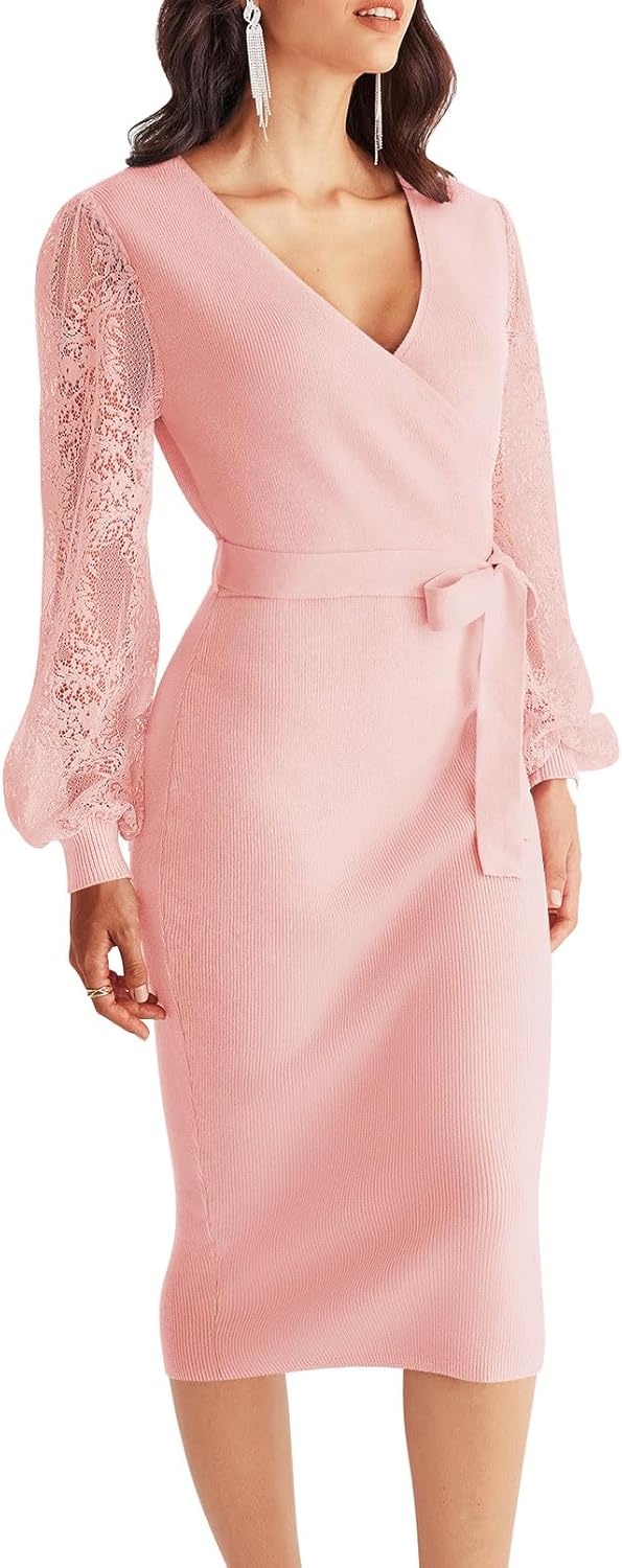 Das Kleid ist mit Ballonspitzenärmeln und einem Wickel-V-Ausschnitt gestaltet und stellt einen modischen Akzent in Ihrer Strickwaren-Kollektion dar. Der weiche und dehnbare Stoff ist ideal für die meisten Körperformen und betont Ihre sexy Kurven auf stilvolle Weise.