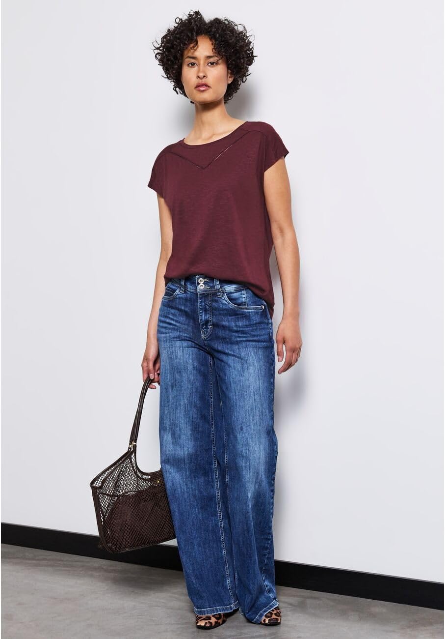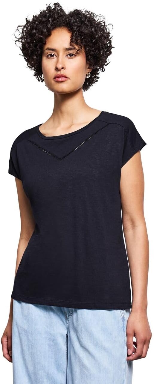 Street One Damen Shirt, Dekotape Shirt Damen, schönes Sommershirt, Damen T-Shirt mit Schlitzen, softer Baumwoll-Modalmix Shirt