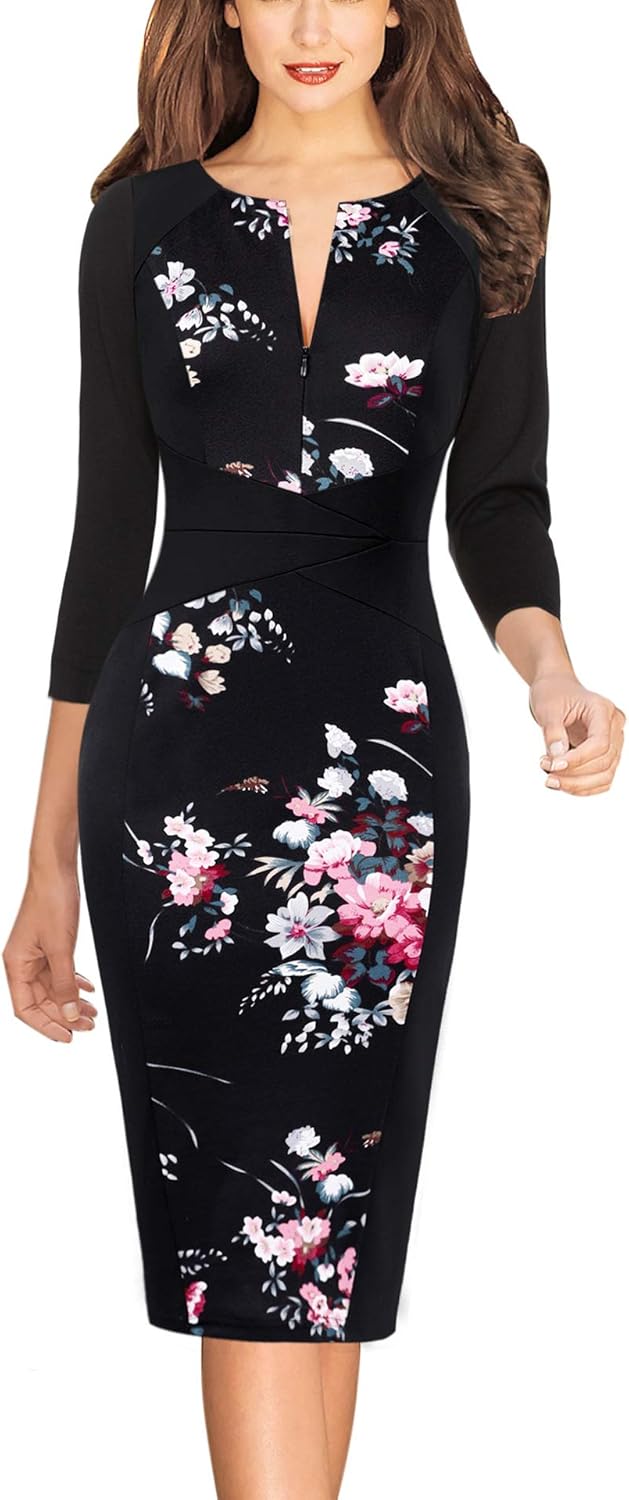 VFSHOW Stilvolles Damenkleid mit Reißverschluss, körperbetont, ideal für Arbeit und Büro